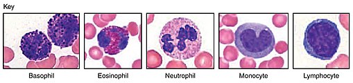 Figure 1. Types of white blood cells. Credit: OpenStax College [CC BY 3.0 (https://creativecommons.org/licenses/by/3.0)]. More details