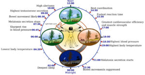 Image showing a person in the center with time and physiological processes controlled by circadian rhythm around the outside. By Yassine Mrabet, Addicted04, CC BY-SA 3.0 (http://creativecommons.org/licenses/by-sa/3.0)], via Wikimedia Commons (https://commons.wikimedia.org/wiki/File:Biological_clock_human.svg)